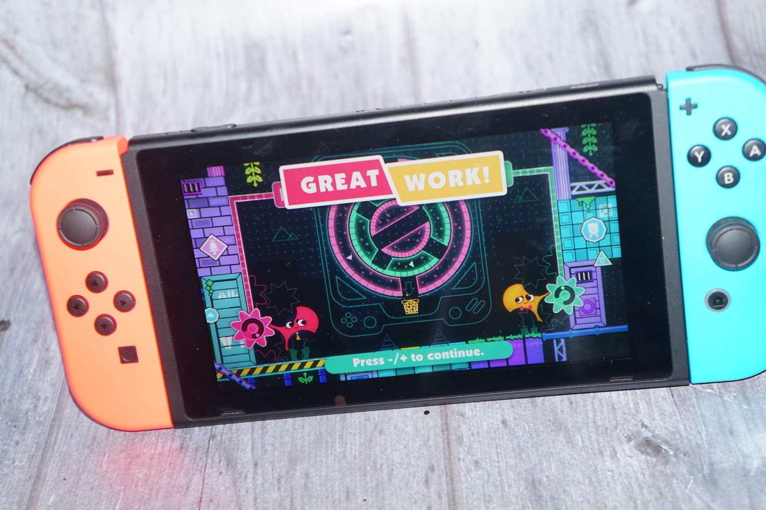 Snipperclips can be played with others in the co-operative mode which means you can work together to think creatively to solve the problems. However, I can’t see me playing this with anyone apart from my mum so I was really glad that you can play in single player mode too. When playing together, each player holds their Joy-Con horizontally and you work together to cut each other’s paper characters into the shapes needed to solve the puzzles.