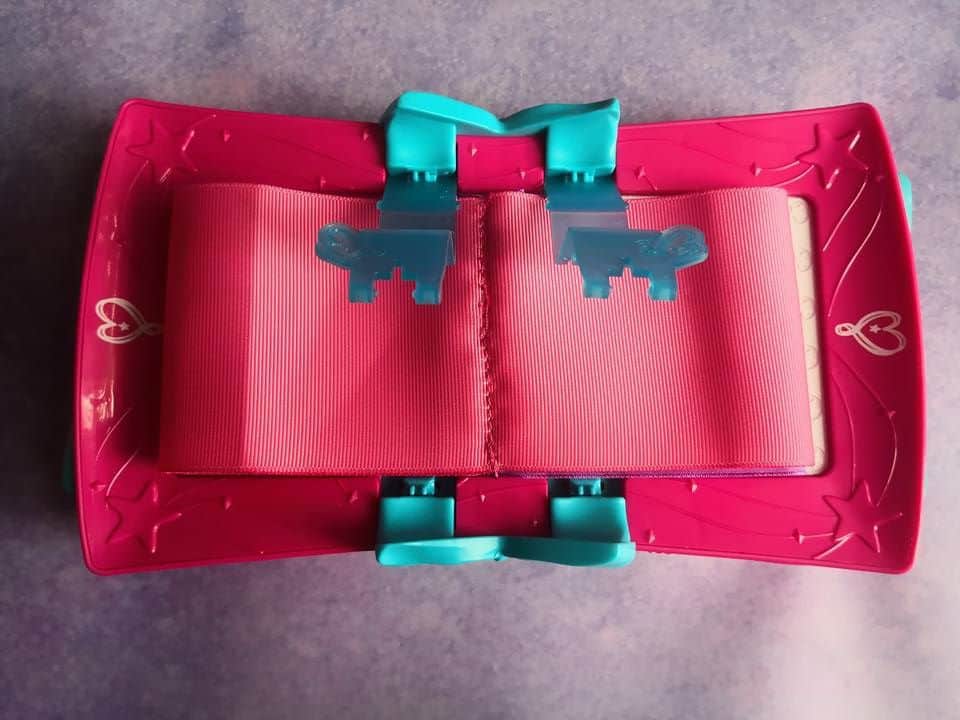 Step 2 – Lift the bow strips and place one or two ribbons into the bow maker.