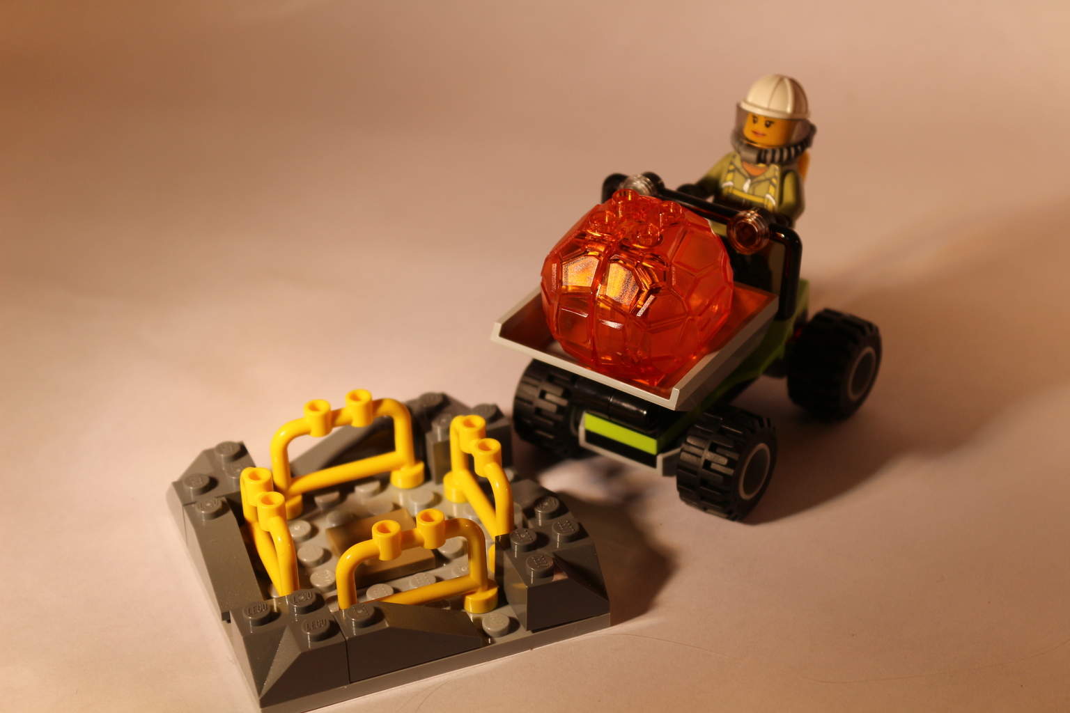The Lego city Volcano Exploration Base set came with 8 numbered bags and created an erupting Volcano, Mobile operations center with Lab, drone, excavator and a dumper. It comes with 6 minifigures including a scientist, adventurer, and a backup crew to run the machines.