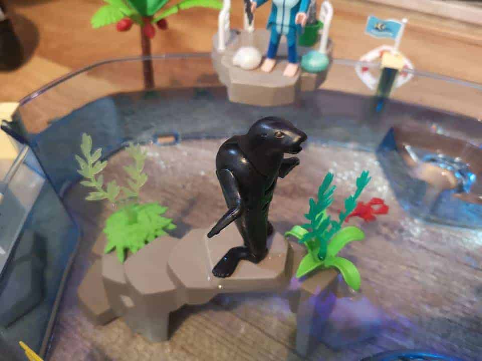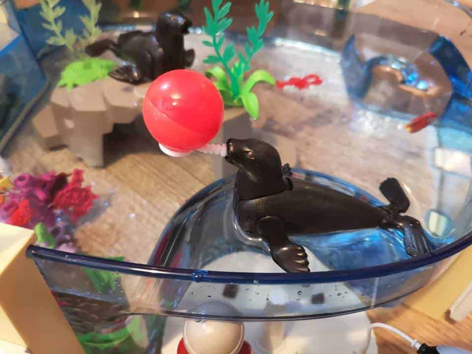 My girls love playing with water so The PlayMobil Aquarium is the perfect set for them. They loved playing with the figures and the sea lions. The sea lions are jointed at the neck, the tail flippers and the forward flippers. They can be stood up which looks great. Alison loved putting on a Sea Lion show and performing a variety of tricks with the sea lions such as balancing the ball or jumping through the hoop.