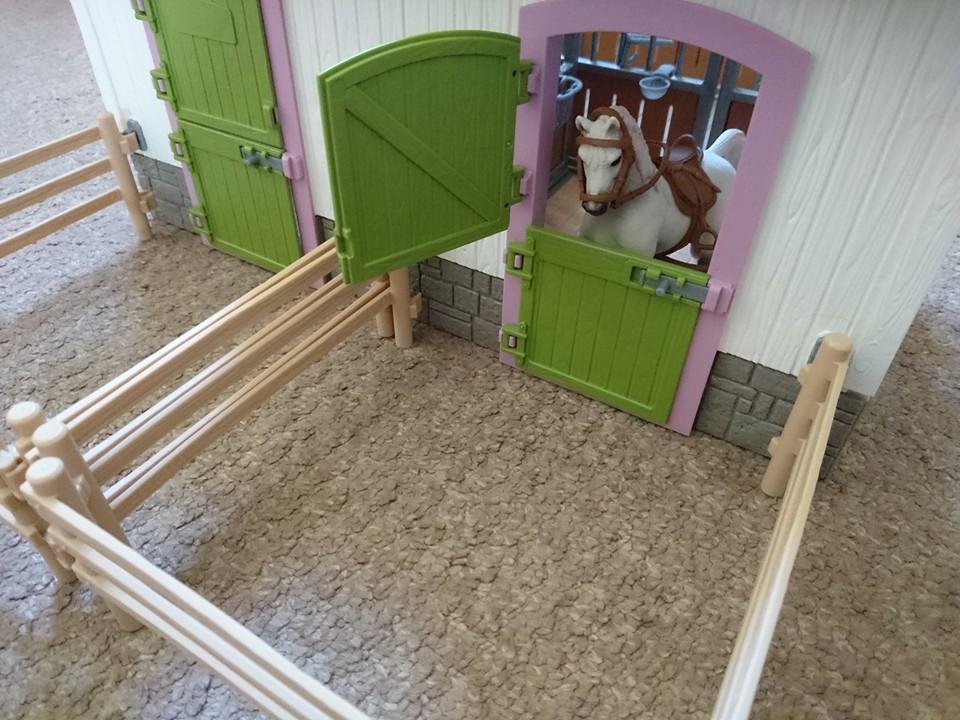 The sliding locks on the doors, the pens, the stable doors that open at the top and the bottom, and the opening roof windows all add to the playability of the set and allow lots of ways to interact with the horses and rider. As the roof can be removed it is easy for the girls to gain access to the inside of the riding centre and the fence panels can be moved and used it create paddocks or anything else that their imagination wishes. The set really does have a huge amount of playability and it has been the toy of choice for both girls for the last few weeks.