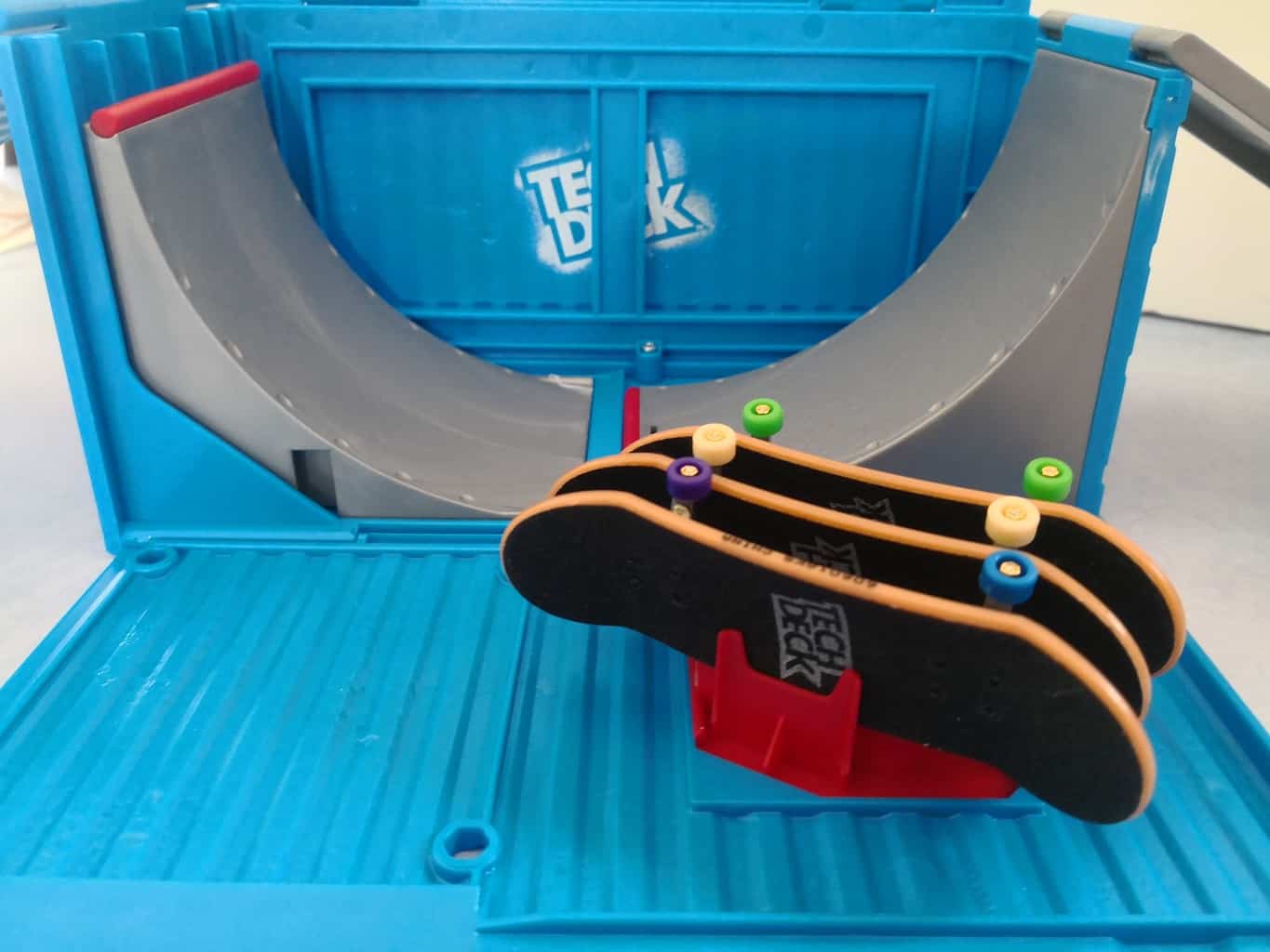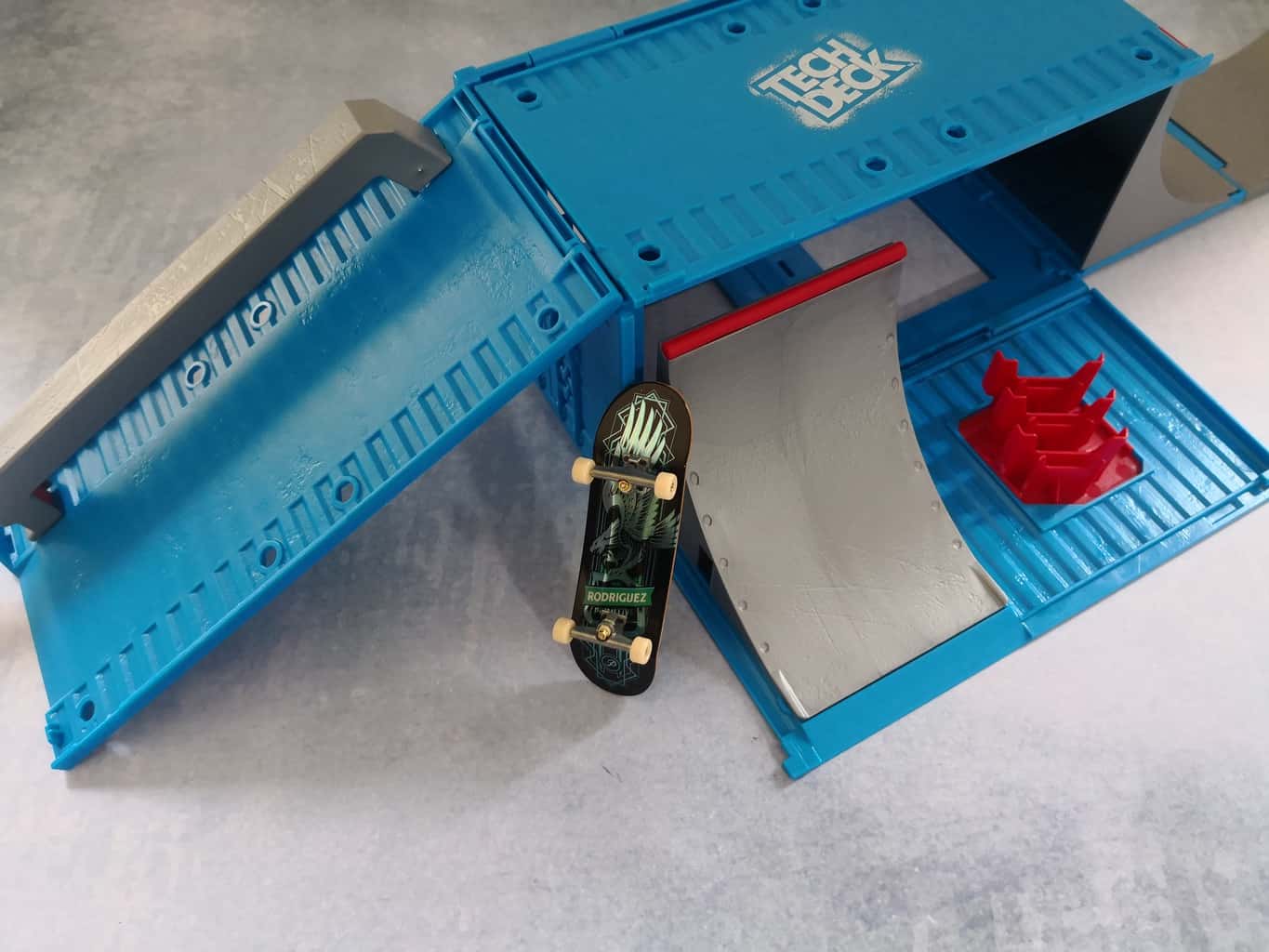 The container ramp is also a great place to store your tech deck skateboards.